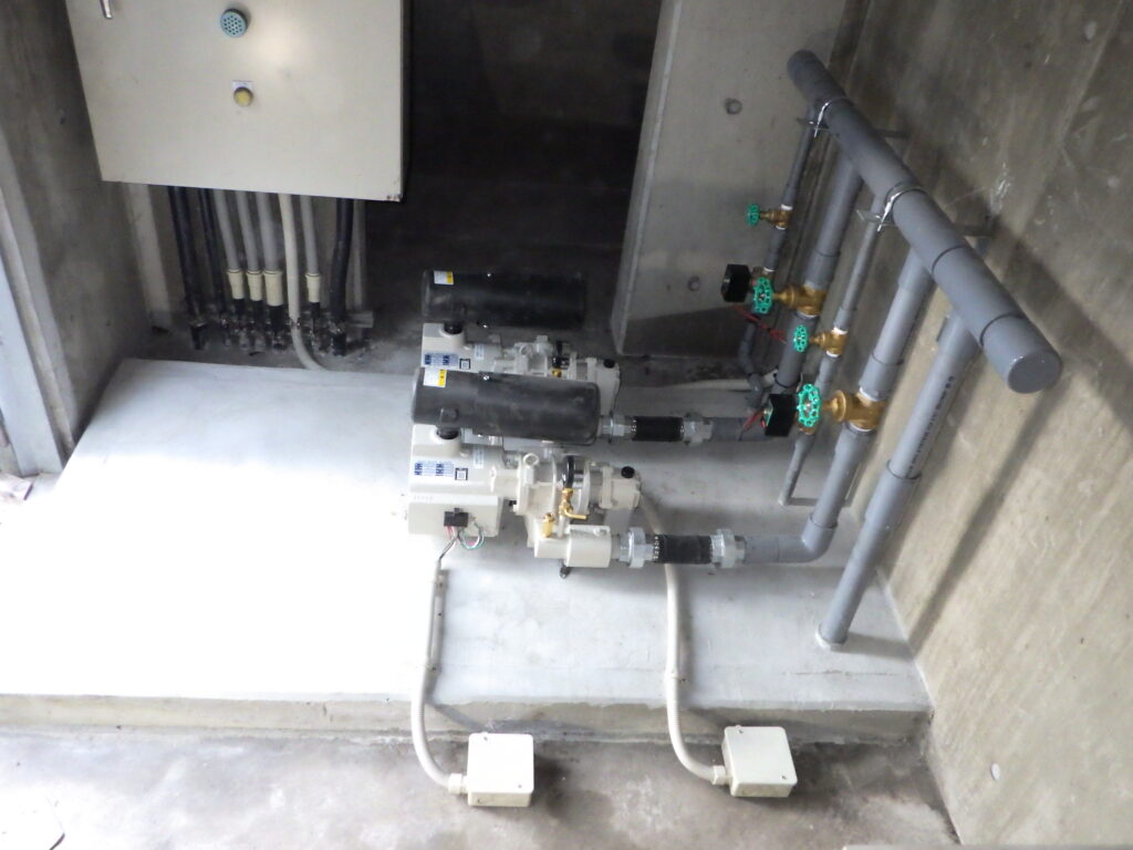 今回の工事は、高齢者介護施設にある中大型合併処理浄化槽のブロワを高効率ブロワへ改修する工事を行いました。既設のブロアや配管を撤去し、最新型のブロアを取り付け配管し直しております。