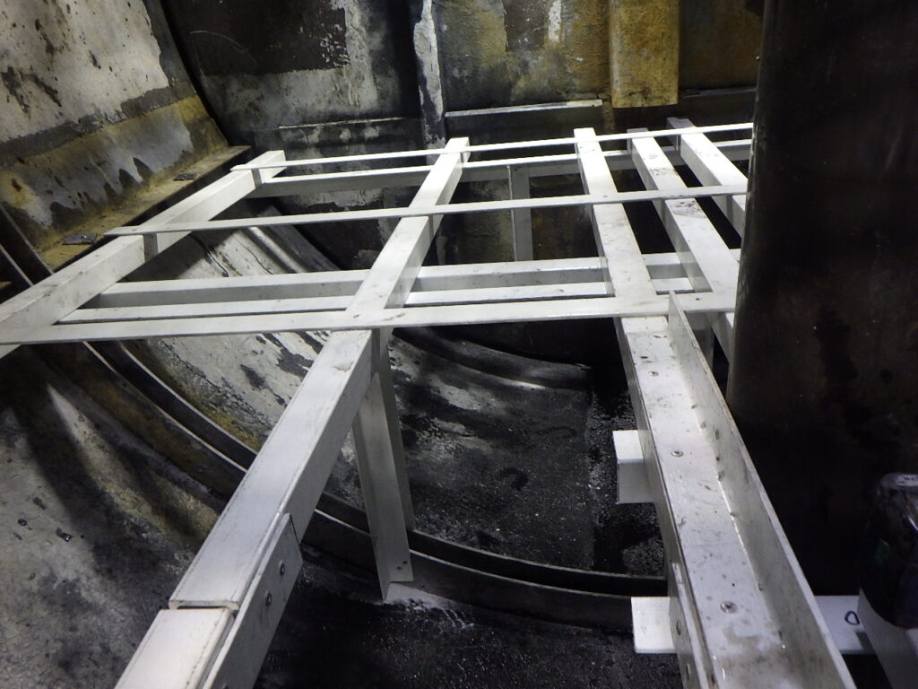ろ材の受け架台が外れ落ちていたため、新しく受け架台をFRPアングル等を使い作成・設置を行っております。