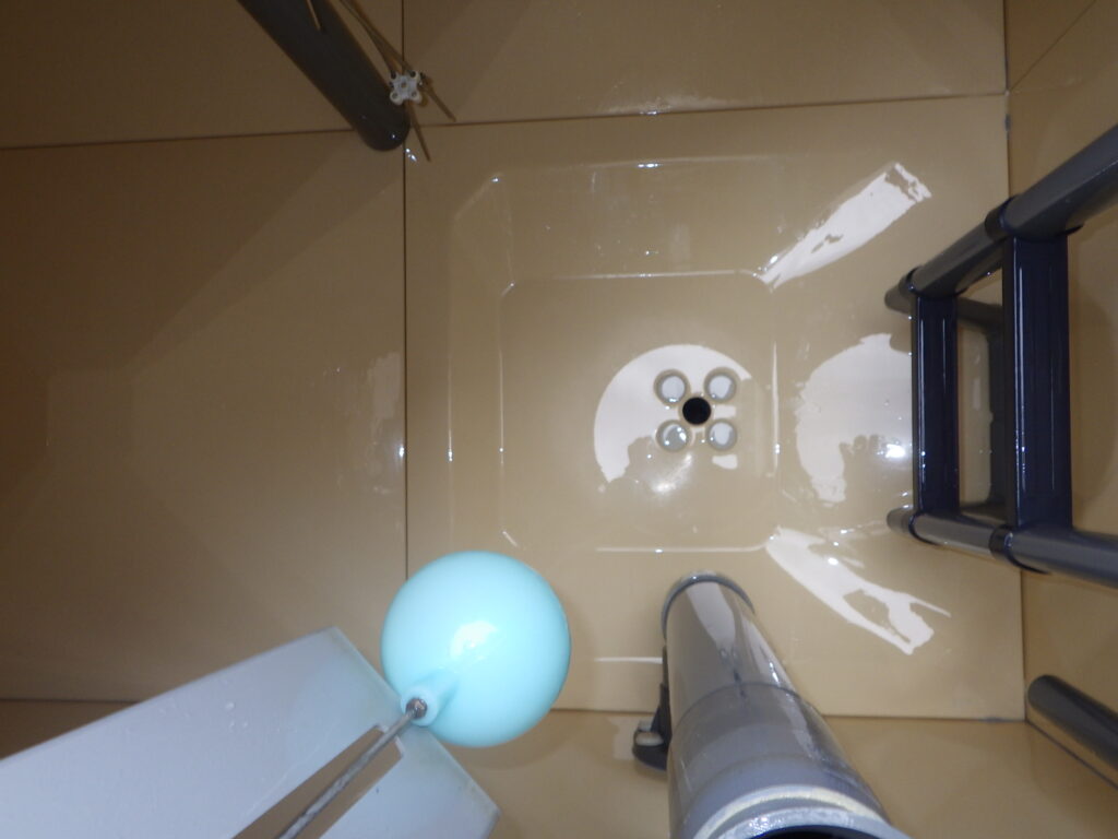 貯水槽中に入り清掃・洗浄・消毒をしていきます。